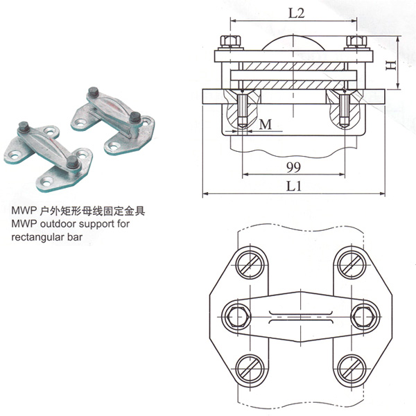 2)户外二片矩形母线固定金具(平放式)