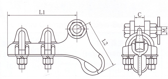 线夹本体为铝合金件,其余为热镀锌钢制件。
