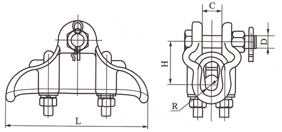 线夹本体和压板为铝合金件,闭口销为不锈钢制件,其余为热镀锌钢制件。