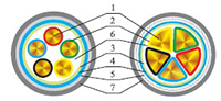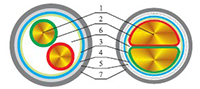 1、导体 2、绝缘 3、包带 4、内衬层 5、铠装层(钢带、钢丝) 6、填充 7、外护套 |