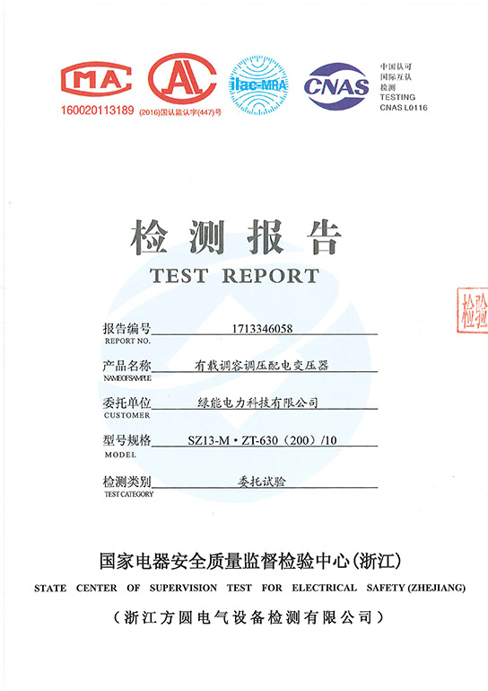 热烈庆祝绿能电力获得了调容调压变压器资质证书